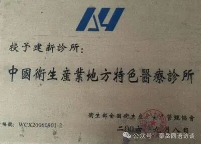 2006年卫生部全国卫生产业企业管理协会,授予“中国地方特色医疗诊所”及“中国地方专科名医”称号,并由《中国卫生产业大典》编委会评选入编出版。