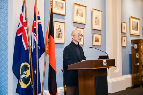 (周鲁浩在阿德莱德市政厅发言)